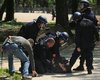 Aussitôt, deux BACeux me prennent en charge et insistent pour me faire baisser la tête, mais jamais un syndicaliste ne baisseras la tête devant les forces de répression ! Enfin, pas chez nous, je l’espère ! Baisser la tête, ca leur permet de te balancer des coups de poings dans la tête sans que les personnes autour ne le voient … comme ils le feront à un autre interpellé.