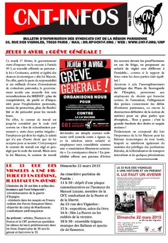 Journée pour le 33, grève générale le 9 avril et festival de la CNT en mai