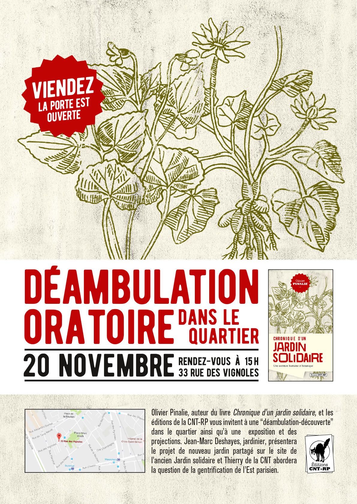 16h30-17h : retour au 33, rue des Vignoles où la CNT fera une intervention sur la