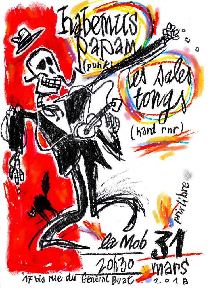 Concert de soutien à la CNT 44 à la Mob (17 bis rue du Général Buat à Nantes). Samedi 31 mars à 20h30 avec : Les Sales Tongs (Hard rock’n roll, Nantes) Habemus Papam (Punk-Oi !, Nantes)